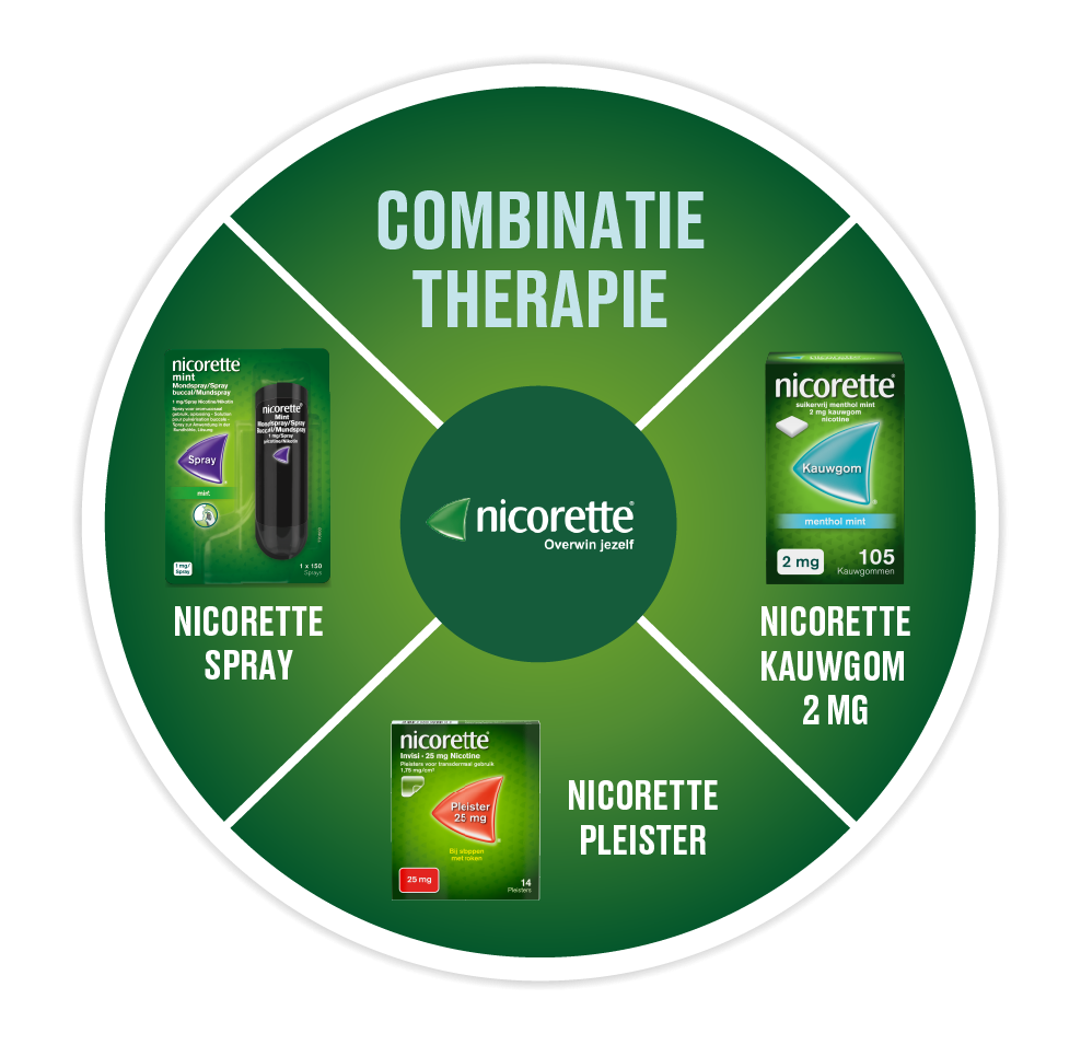 De nicorette® combinatietherapie is aangewezen voor zware rokers, rokers die last hebben van een 'doorbraakhunkering' (een plotselinge, moeilijk bedwingbare drang tot roken), of rokers bij wie een behandeling met één enkele vorm van nicotinesubstitutietherapie niet heeft geholpen. Zij kunnen nicorette® Pleister gebruiken in combinatie met een oromucosale vorm van nicorette® om de hunkering snel te verlichten.